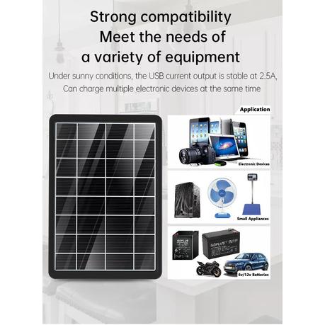 Multi Function: The Charging Panel With USB Multi-Head Cable(Android, Samsung, TYPE-C, DC etc) can charge mobile phones, power banks, speakers and 5V USB devices; the alligator chip can be used for car or battery charging.