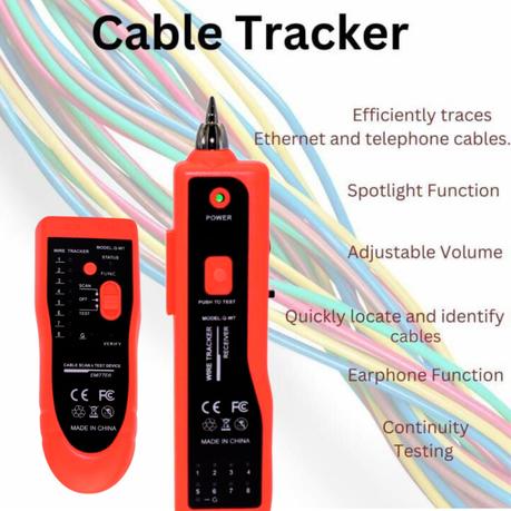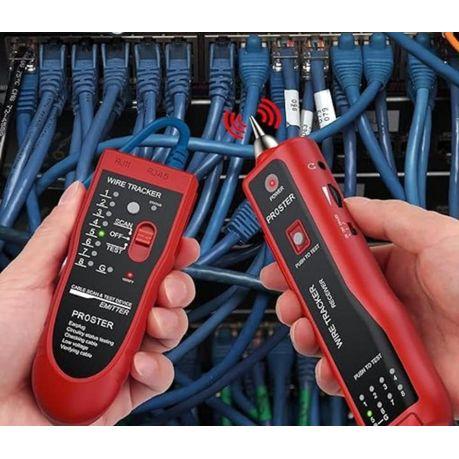 The Proster Wire Tracker is a versatile and compact tool designed to efficiently test and track cables with RJ45, RJ11, POE, and Q-W7 connectors, making it ideal for both Ethernet LAN setups and telephone lines. It quickly identifies wiring issues such as open circuits and shorts, streamlining the troubleshooting process. User-friendly and bright red for high visibility, this wire tracker is perfect for professionals and DIY enthusiasts alike, allowing for quick and efficient cable management and continuity checks.
