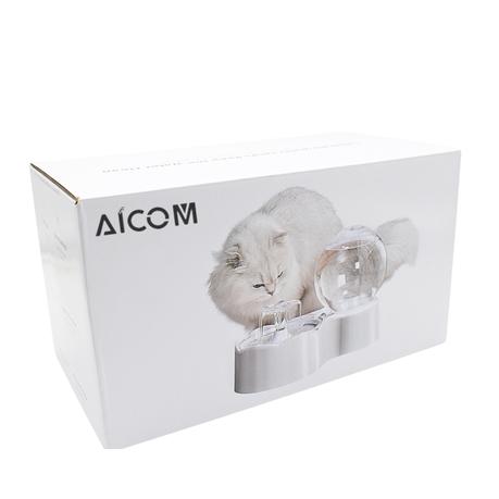 AICOM- 2 in One Pet Water Fountain Dispenser with Stainless Steel Food Bowl