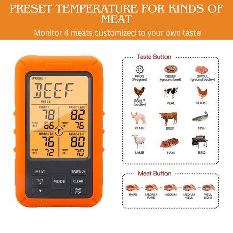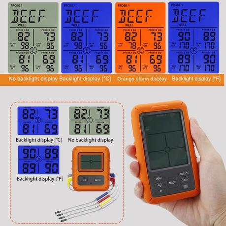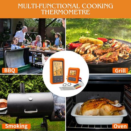 AICOM – 4 Probes Digital Meat Thermometer with Alarm Calibration & Timer