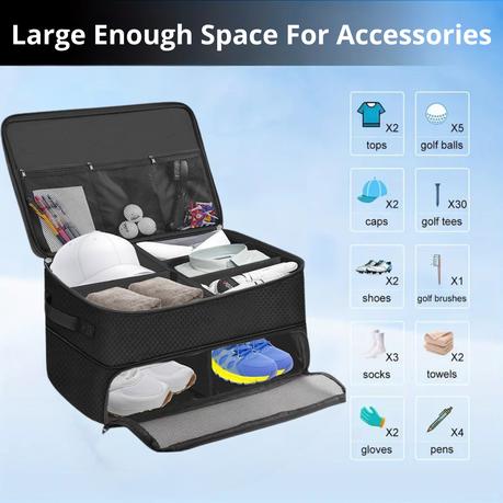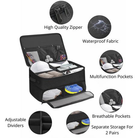 1 x 2 Layers Golf Trunk Organizer Sports Bag with 2 Shoe Compartments