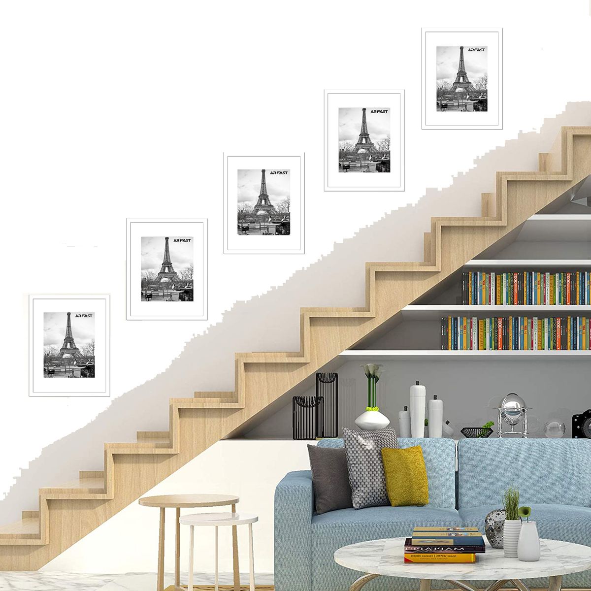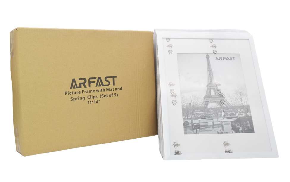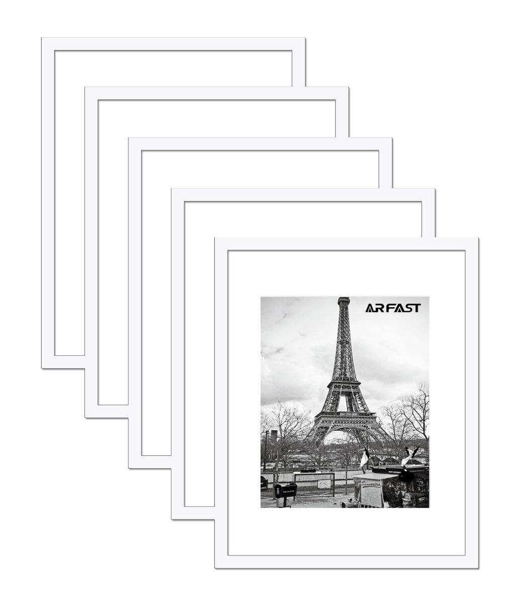 ARFAST – 5″x7″ Picture Frame with Mat and Spring Clips(Set of 5) – White