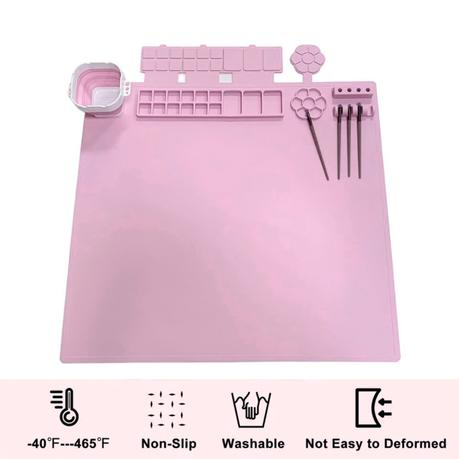 Arfast – 70×61cm Silicone Art Pad with Washing Cup/Paint Well/Brush Holder – Pink