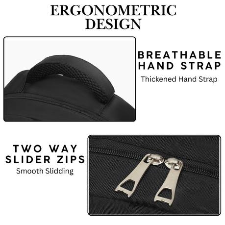 - Trolley Compatibility: Back elastic strap for use with rolling luggage
