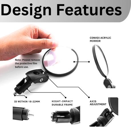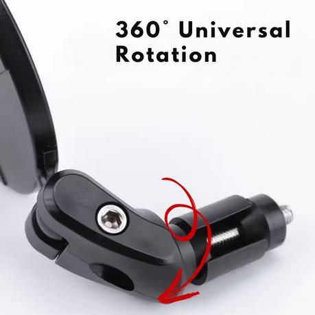 • A 360 rotating mirror head allows you to customize your view for your posture, height, and handlebar type-ensuring optimal visibility every time.