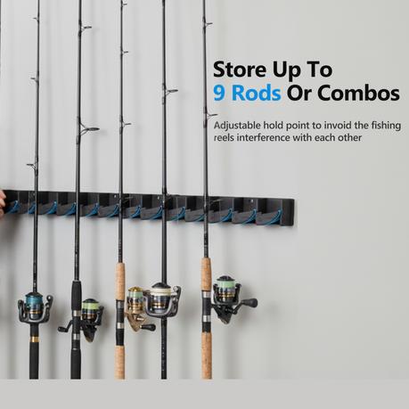 Arfast – Wall-Mounted Fishing Rod Holder Storage Rack for 9 Rods