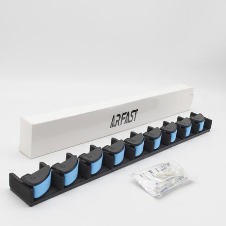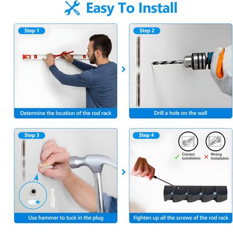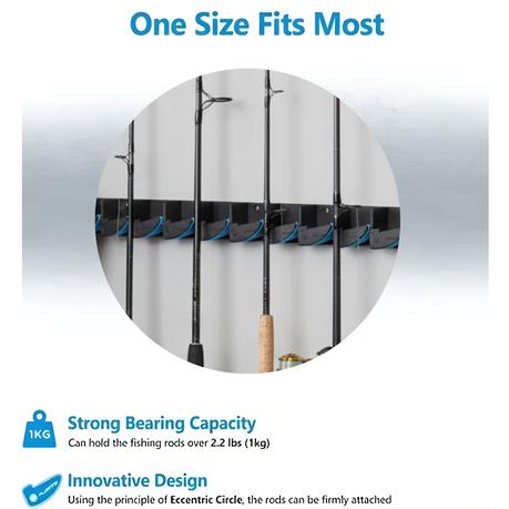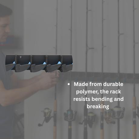 • Constructed from high-strength ABS plastic, this rack resists bending and wear, while fitting 9 fishing rods in under 45cm of wall space-perfect for compact storage in garages, sheds, or fishing cabins.