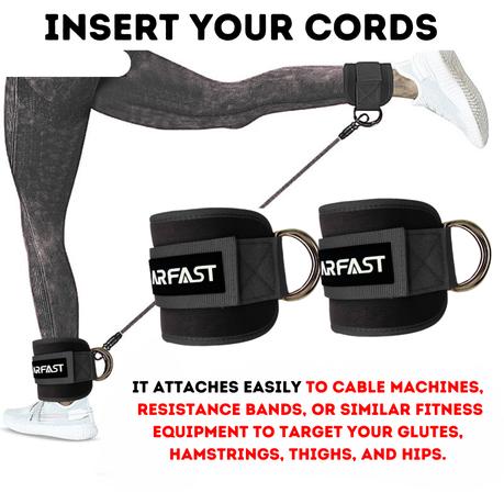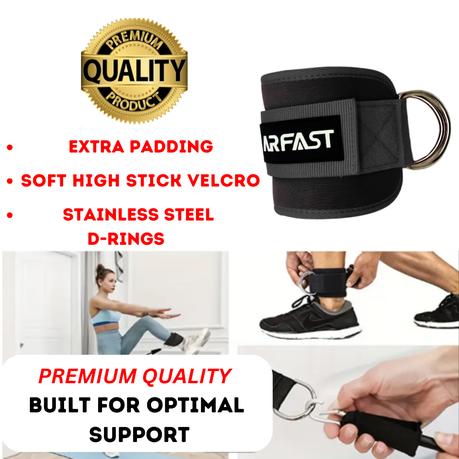 ARFAST-Workout Ankle Straps with Stainless Steel Rings Velcro Closure(Pair) – Black