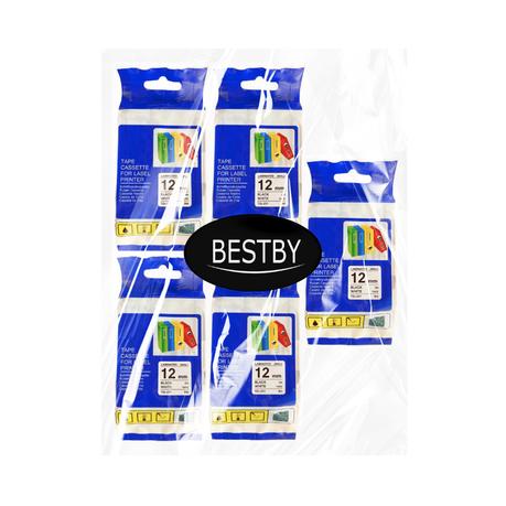 Bestby- 12mm Tape Cassette Compatible with Brother Label Printer (Set of 5)