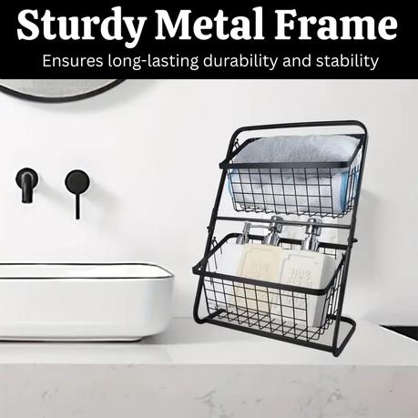 The Bestby 2 Tier Black Metal Wire Storage Basket Rack is a sleek and functional organizer designed to declutter your home in style. Featuring a durable matte black frame and space-saving vertical design, it blends effortlessly into kitchens, bathrooms, offices, and beyond. Whether you’re storing toiletries, spices, or craft supplies, this rack helps keep your essentials neatly arranged and easily accessible.