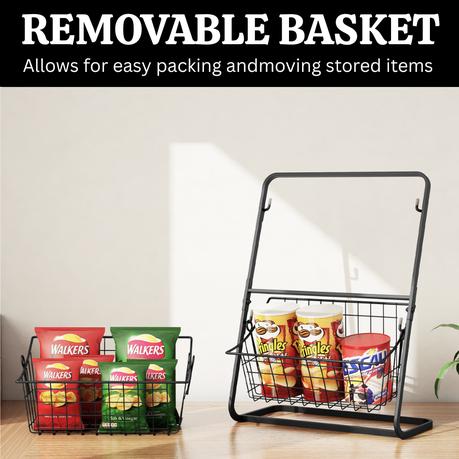 1 x 2 Tier Black Metal Wire Storage Basket Rack