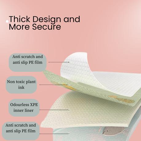 Lightweight and easily foldable, this play mat is a must-have for modern families. It folds down compactly for quick storage or travel, making it ideal for use in playpens, nurseries, or even on trips to the park.