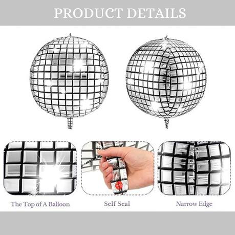 – Striking 4D Disco Ball Effect: With their perfectly round 22-inch design and radiant metallic silver finish, these balloons create a mesmerizing mirror-ball look that adds vintage glam and reflective brilliance to any event.