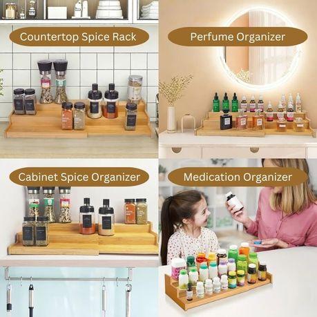 – Multi-Purpose Organizer for Every Room: Designed for complete home versatility, it works beautifully as a countertop spice rack, vanity perfume stand, cabinet shelf organizer, skincare holder, medicine display, essential oil station, or even a kids’ vitamin organizer. One product, endless uses.