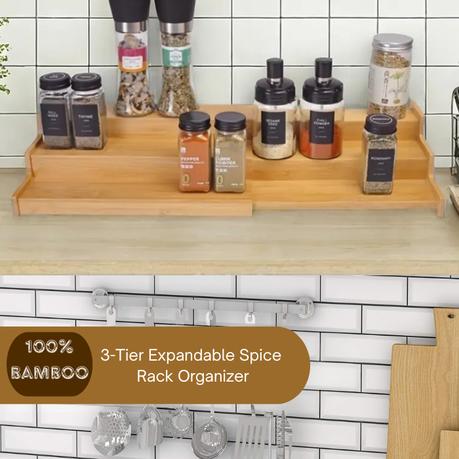 Bestby 3-Layer Bamboo Extendable Kitchen Seasoning Rack Organizer
