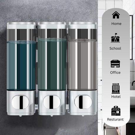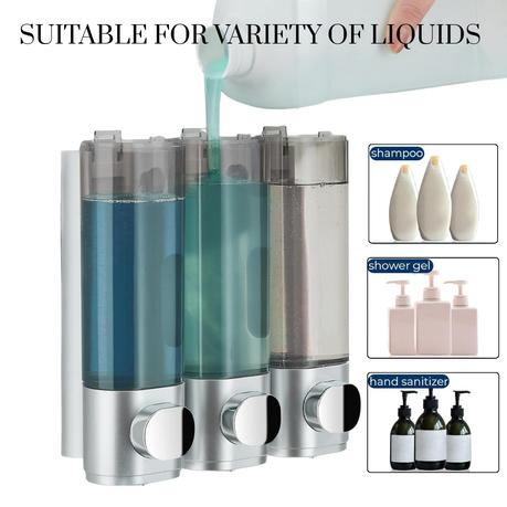 Bestby – 3x300ml Shampoo, Conditioner, Bath Lotion, Liquid Soap Dispenser – Silver
