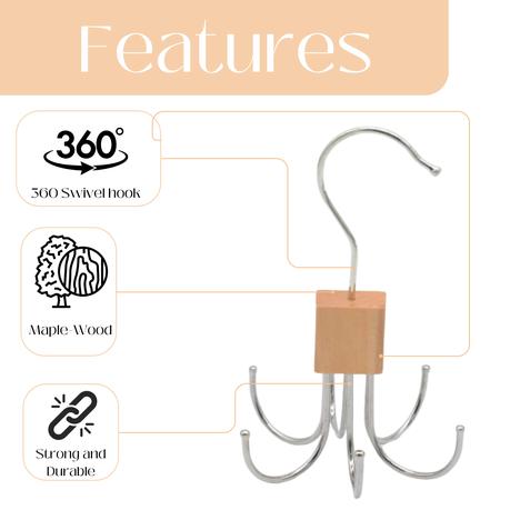 Bestby – 5 Pcs Belt & Hat Organizer 360 Rotatable Prong Hooks – Beige