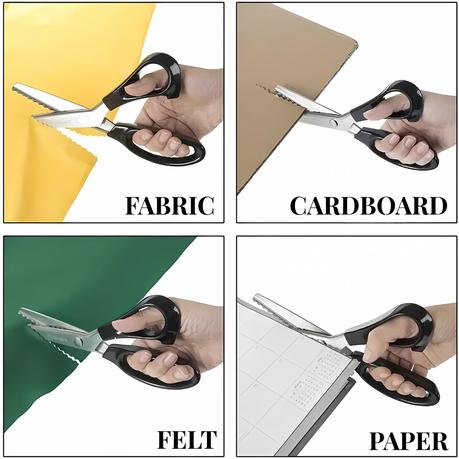 - Precision Zigzag Cutting (5mm & 7mm): Dual blade sizes provide flexibility for different fabric types and design needs. The 5mm serrated edge is perfect for tight, neat zigzags, while the 7mm round edge creates bold, decorative cuts.