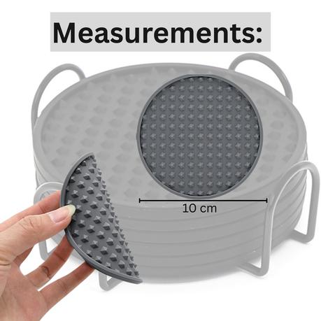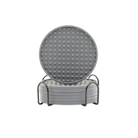Bestby – 6 Pieces Silicone Coasters with Iron Holder – Grey