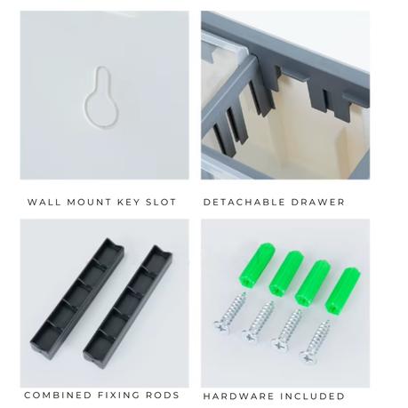 Keep your workspace organized and tidy with this versatile storage box, available in multiple divider 7 drawers to suit your specific needs. Whether mounted on the wall or stacked together using post-connectors, these storage boxes help maximize space while keeping everything within reach and neatly arranged. Ideal for home, offices, kids’ rooms, workshop, garages for stationary, Lego toys, jewelry, small parts, or tools storage, this organizer is a must-have for anyone who values efficiency and order.