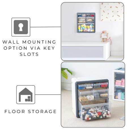 – Wall-Mounted or Stackable for Custom Storage: Designed for flexibility, this organizer can be wall-mounted using the pre-molded keyhole slots or stacked together with the included connecting posts. Adapt it to fit your space and storage needs effortlessly.