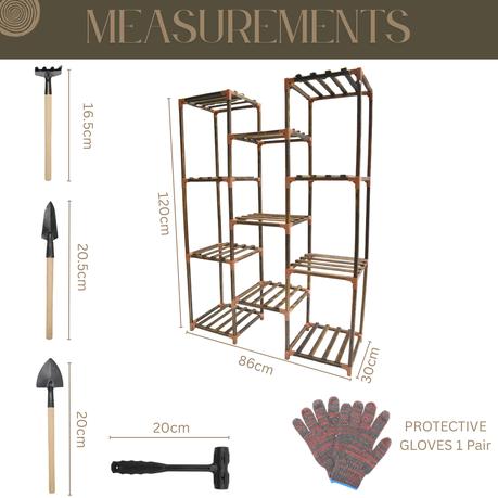 Engineered with reinforced rectangular connectors that provide optimal weight distribution and exceptional structural stability. Capable of securely holding multiple potted plants, both small and large, without wobbling or sagging. - Tool-Free, Hassle-Free Assembly :Innovative joint connector system eliminates the need for screws, nails, or specialized tools. Designed for a quick, stress-free setup using only the included accessories perfect for assembly in minutes and easy disassembly for storage or relocation.