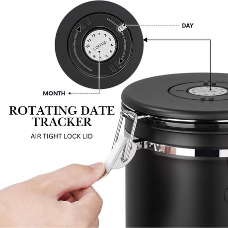 Bestby – Airtight 1.8L Coffee Container with Measuring Spoon and Date Dial – Black
