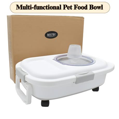 Bestby- Collapsible Multifunctional Pet Food Bowl Storage With Pully Wheels