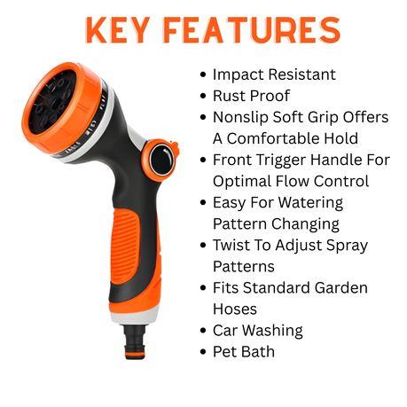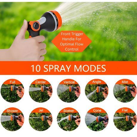 - 10 ADJUSTABLE WATERING PATTERNS: This water hose nozzle features 10 unique spray patterns. Simply twist the head disk to switch between modes effortlessly. Whether you need a high-pressure jet for cleaning your car or a soft, gentle shower for watering plants, this nozzle has you covered.