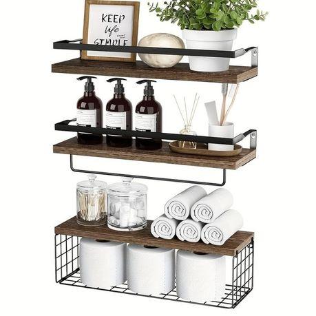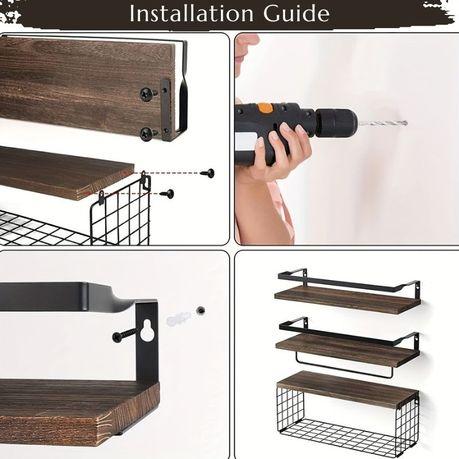 - This matching set of three shelves can be installed together or separately, allowing you to customize your layout for any room. Ideal for holding books, plants, spices, or small art pieces, the sleek design fits effortlessly into rustic, modern, or minimalist interiors.