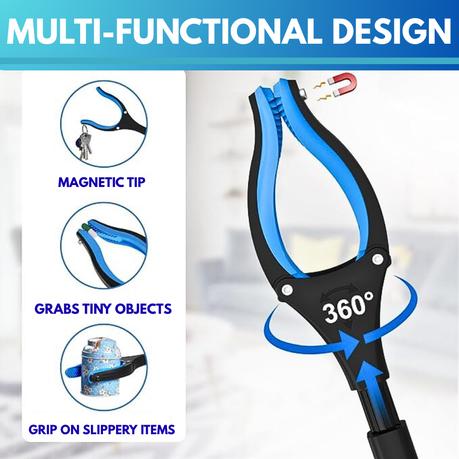 Your everyday reach solution-ergonomic grip, trigger-operated claw, anti-slip rubber tips, lightweight, foldable design. Perfect for litter pickup, fallen items, or mobility support.