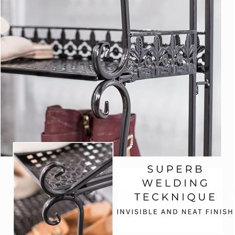 Bestby- Nordic 4-Tier Multifunctional Foldable Iron Storage Rack Organizer – Black