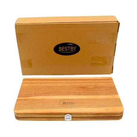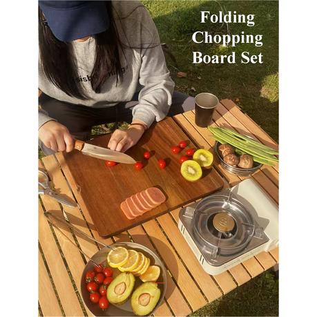 Bestby-Outdoor Folding Wooden Cutting Board with Stainless Steel Utensils