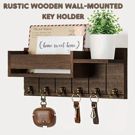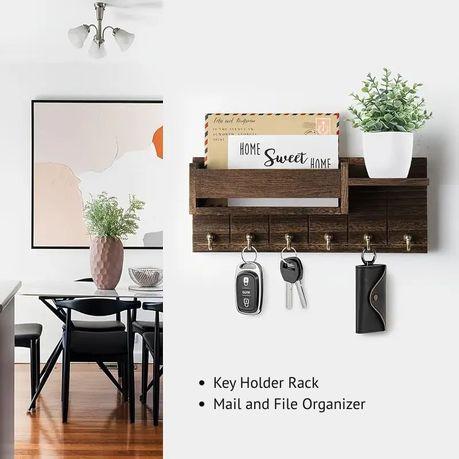 Upgrade your home entryway or office with the Bestby Rustic Wooden Wall Key Holder with Mail Organizer & Tray. Crafted from high-quality wood and designed to save space while adding charm, this versatile unit helps you keep your daily essentials neatly stored and within easy reach. Perfect for anyone seeking a clutter-free and stylish solution for their home or workspace. Its compact size makes it ideal for small spaces, while the rustic wooden finish complements a wide range of interior styles. Say goodbye to misplaced keys and hello to organized living.