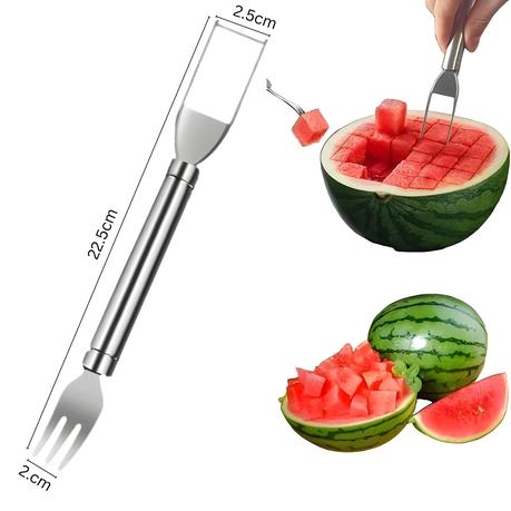 – User-Friendly Design: Simply press into the watermelon to create cubes, then flip and use the fork end to serve or eat directly. It’s a quick and convenient way to enjoy your fruit