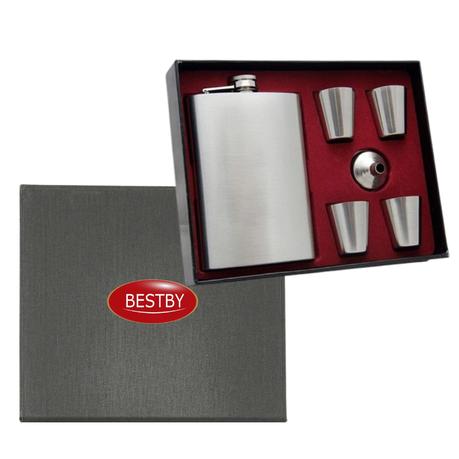 Bestby – Stainless Steel Silver Hip Flask with 4 Shot Cups and Lid Funnel