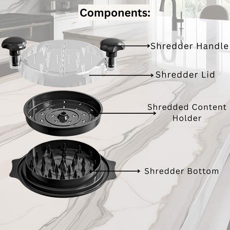 - Made from high-quality, BPA-free PP plastic and stainless steel, the shredder is both durable and safe for everyday food use. The materials are FDA-compliant and designed to withstand repeated use without degrading or warping.