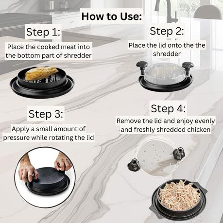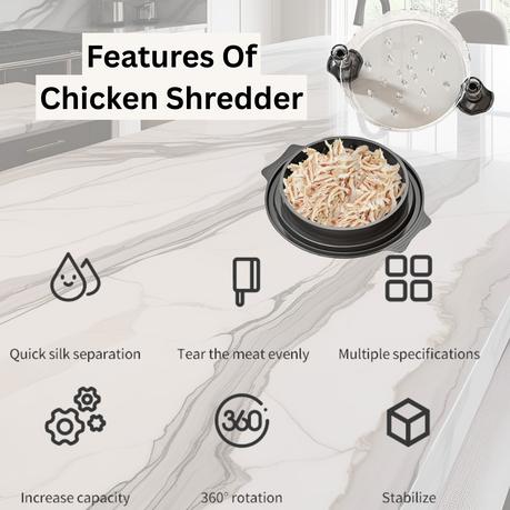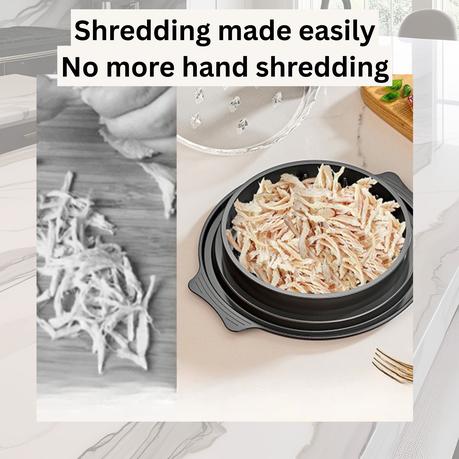 - Designed specifically for shredding cooked chicken, pork, or beef, this tool makes meal prep faster and cleaner. It is estimated 10 times faster than manual tearing. With just a simple twist, it pulls meat into fine strands, ideal for tacos, sandwiches, and more.