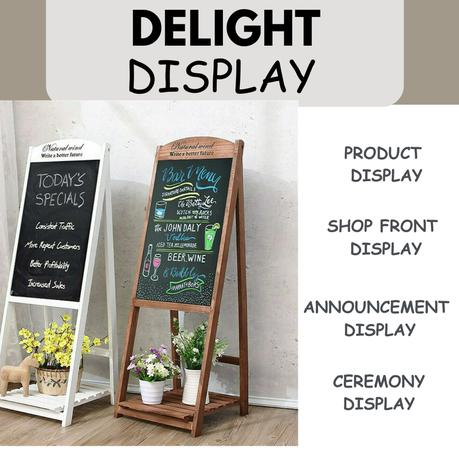 Bestby – Wooden Fold-up Easel Blackboard with Base Shelf for Menu/Display – Brown