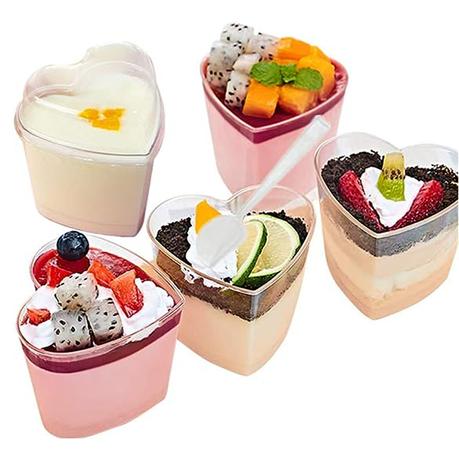 Multi-Functional: The clear heart shaped dessert cups are perfect for displaying delicious desserts, puddings, mousses, sorbets, tiramisu, cocktails, fruit, cakes, ice cream, smoothies, jellies, yogurt etc;