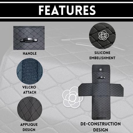 - Design Elements: Handle, Velcro fasteners, silicone embellishment, foldable construction